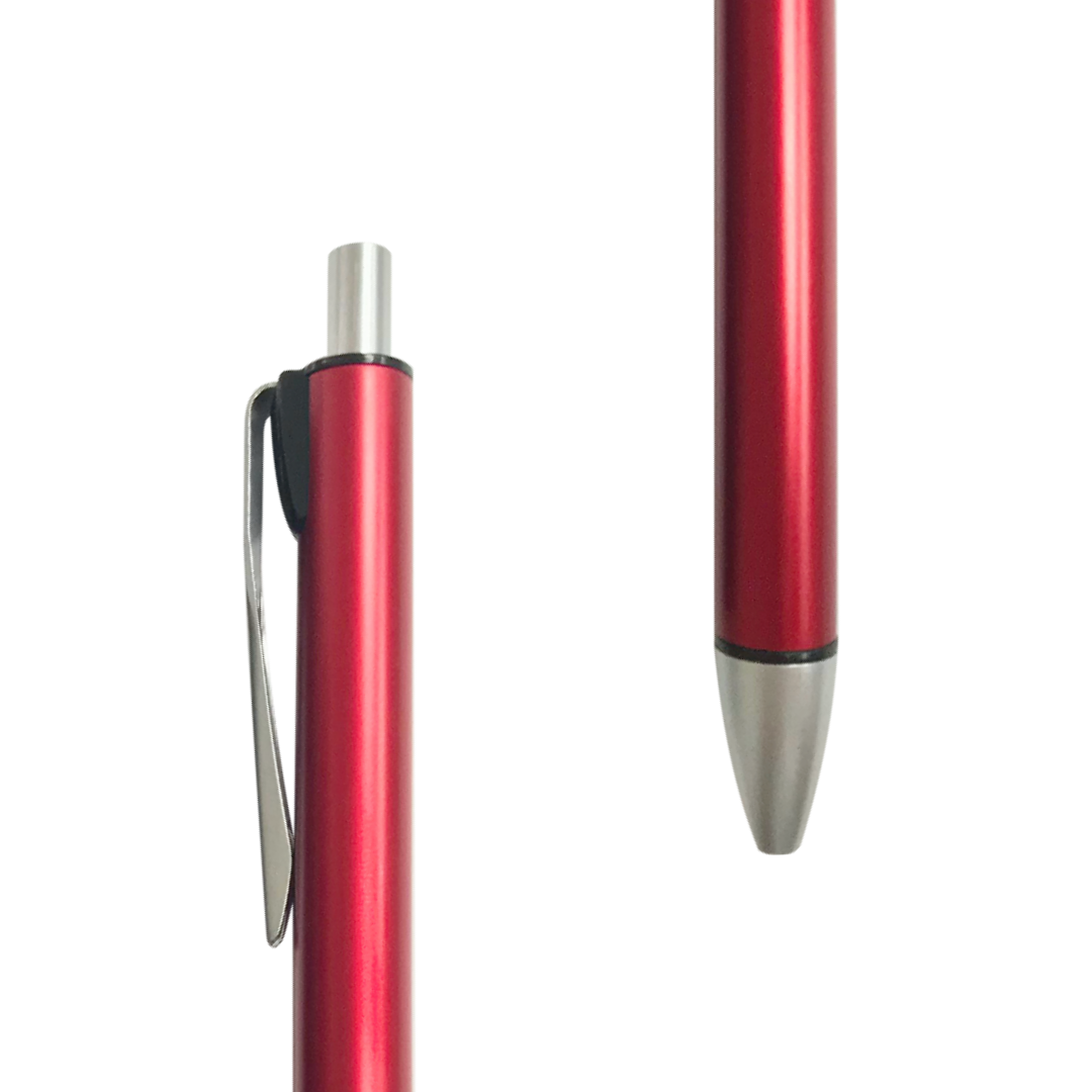 Caneta em metal vermelha.