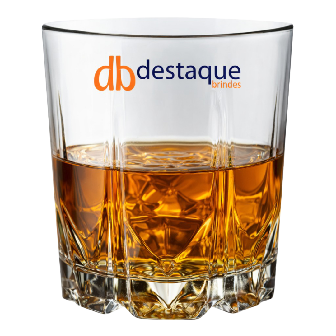 Copo whisky 330ml em vidro detalhado.