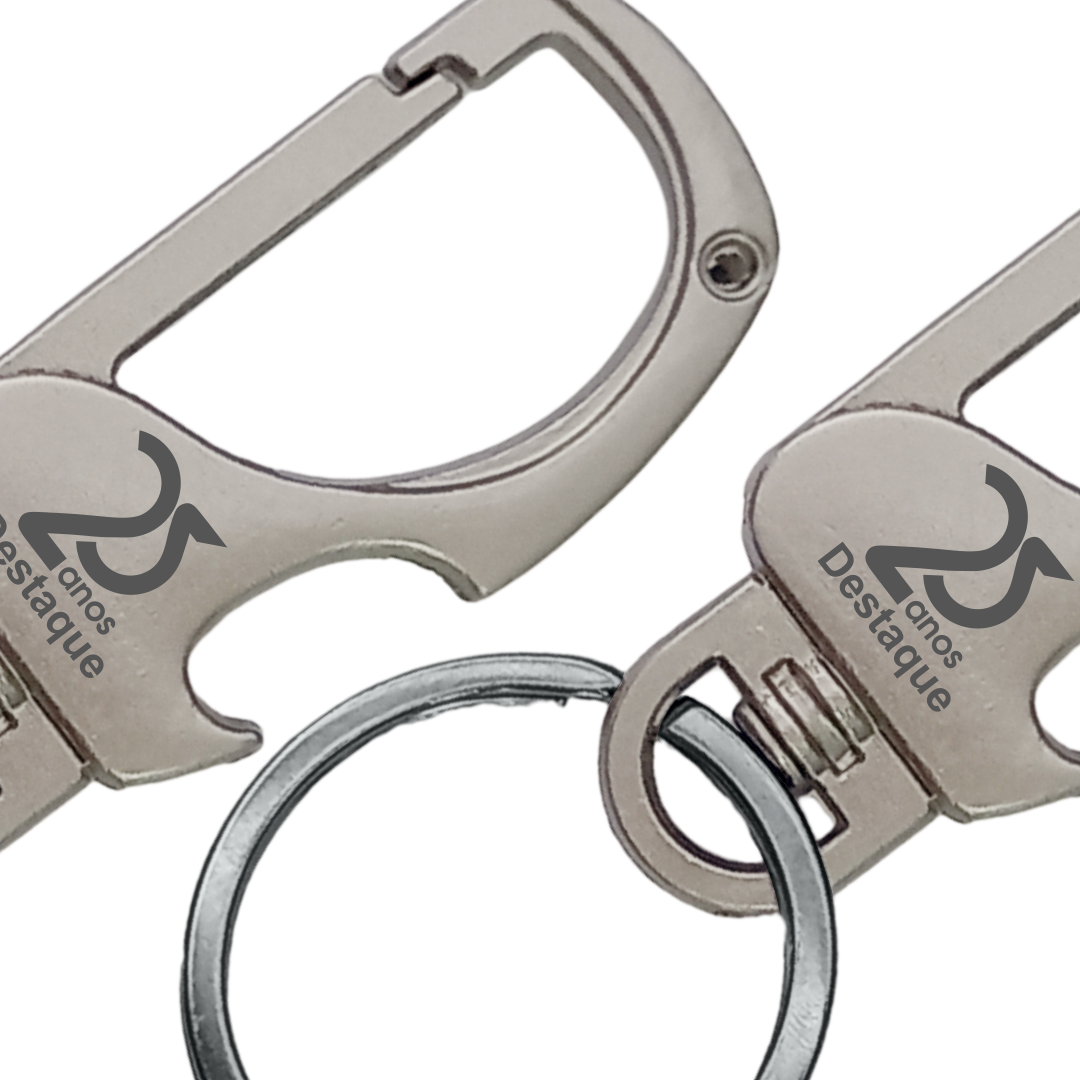Chaveiro metálico, prático, resistente e funcional, este chaveiro é ideal para quem busca segurança e praticidade no dia a dia. Possui acabamento sofisticado e sistema de abertura com gatilho, facilitando a fixação em cintos, mochilas, bolsas ou alças.